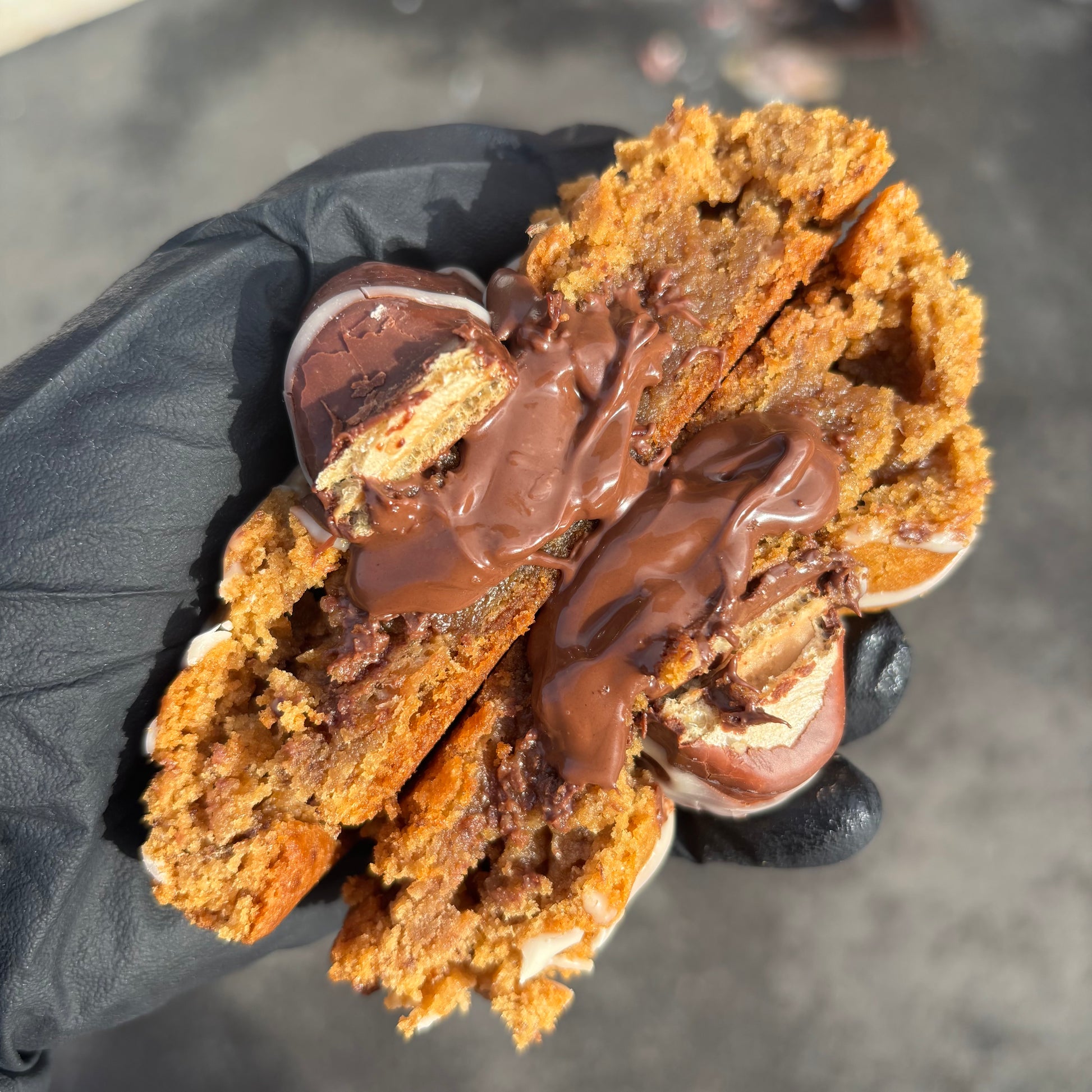 Our best-selling cookie of all time is back for a limited time only! This indulgent treat combines soft, vegan cookie dough studded with crunchy Bueno pieces, a generous layer of creamy Nutella filling, and a crispy Bueno wafer on top finished with white chocolate drizzle. It's the ultimate flavour combination for hazelnut and chocolate lovers—don't miss out on this exclusive comeback.